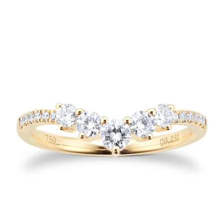 Goldsmiths 18ct Yellow Gold 0.50ct Diamond Curved Wedding Ring