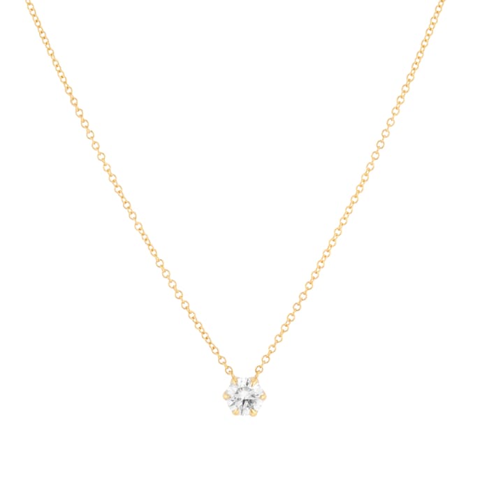 - A refined solitaire pendant crafted in warm 18ct yellow gold.
