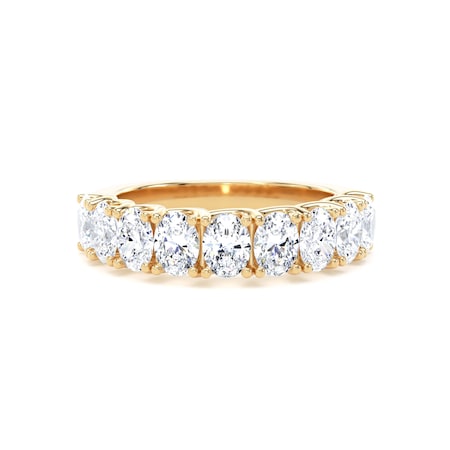 This 18ct yellow gold half eternity ring features nine oval cut lab-grown diamonds with a total weight of 2.00ct. The elongated shape of each stone adds graceful dimension to the band, enhancing its visual flow and brilliance.
