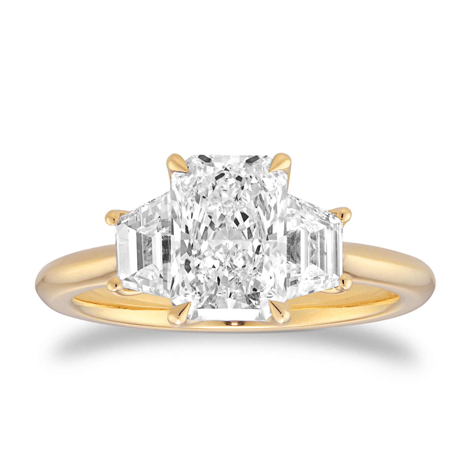 Goldsmiths 18ct Yellow Gold 2.16cttw Radiant and Trapezoid Cut Lab Grown Diamond 3 Stone Engagement Ring