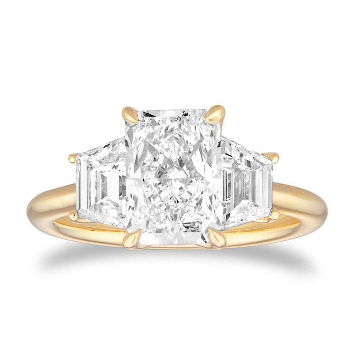 Goldsmiths 18ct Yellow Gold 2.70cttw Radiant and Trapezoid Cut Lab Grown Diamond 3 Stone Engagement Ring