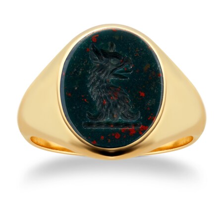 Goldsmiths 18ct Yellow Gold Bloodstone Signet Ring - Ring Size N