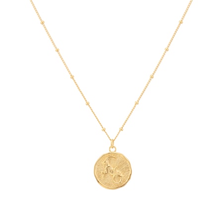 This Capricorn pendant in 18ct yellow gold plated sterling silver captures the essence of the sea-goat – grounded, determined, and quietly ambitious. The warm gold tone enhances the sculpted zodiac motif, while the beaded chain adds a tactile finish. A meaningful piece for those who lead with purpose and patience.