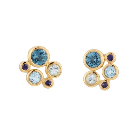 Goldsmiths 18ct Yellow Gold Sapphire Aquamarine and Blue Topaz Bezel Set Stud Earrings