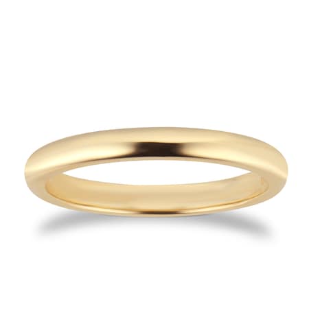 Goldsmiths 2.5mm D Shape Heavy Polished Chamfered Edges With Matt Centre Wedding Ring In 9 Carat Yellow Gold - Ring Size K
