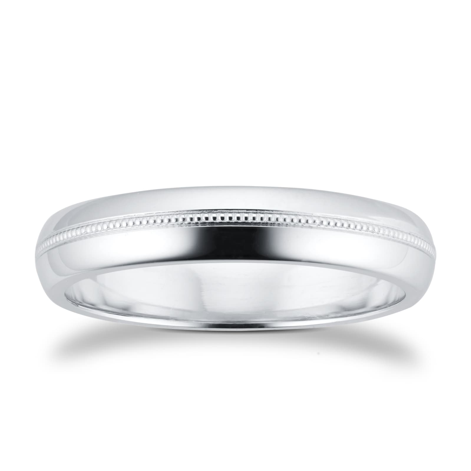 Goldsmiths 4mm D Shape Heavy Milgrain Centre Wedding Ring In 9 Carat White Gold