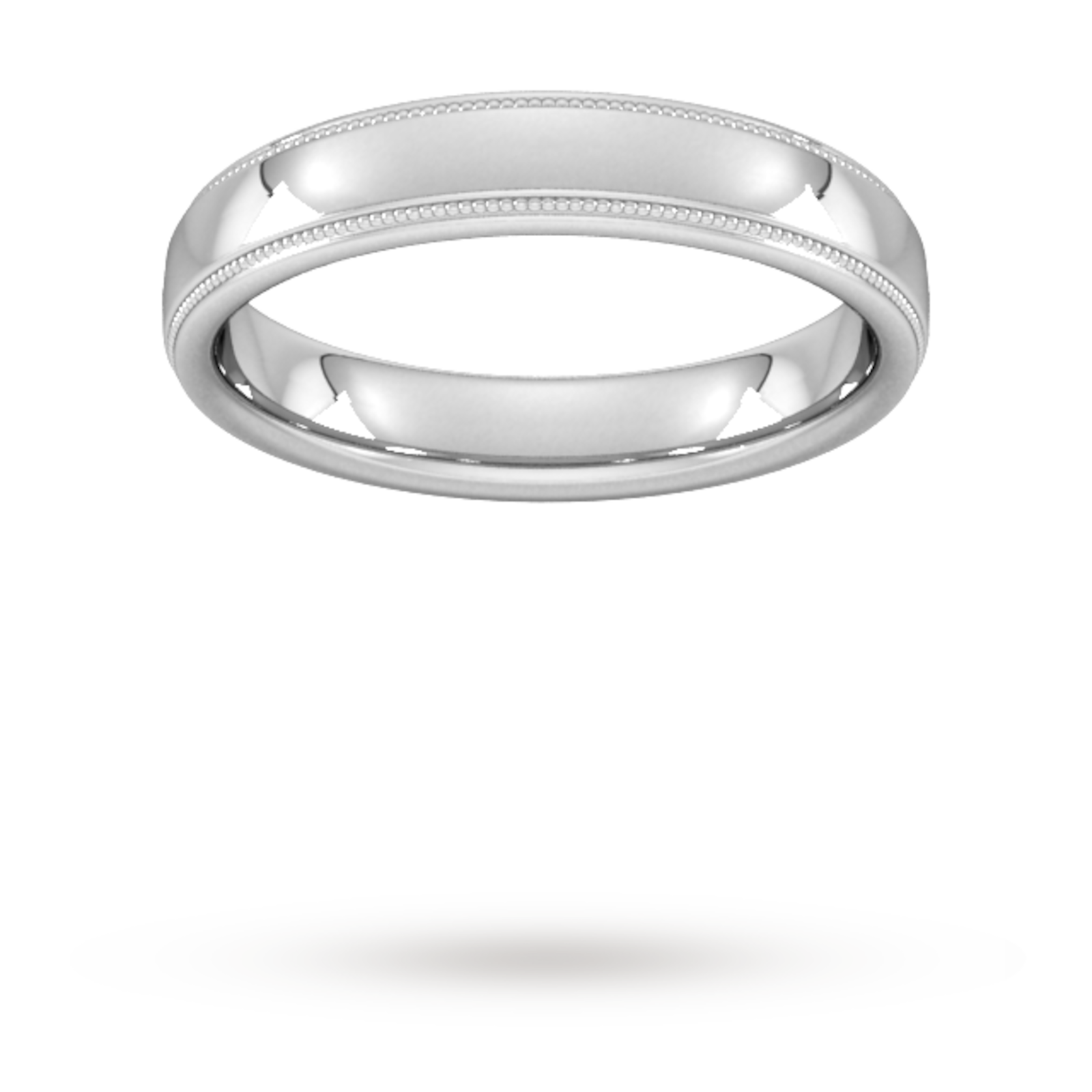 Goldsmiths 4mm D Shape Standard Milgrain Edge Wedding Ring In 18 Carat White Gold