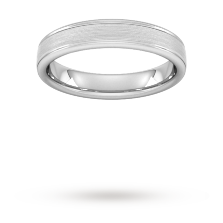Goldsmiths 4mm Flat Court Heavy Matt Centre With Grooves Wedding Ring In 9 Carat White Gold - Ring Size S