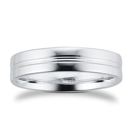 Goldsmiths 4mm Traditional Court Standard Grooved Polished Finish Wedding Ring In 9 Carat White Gold - Ring Size U