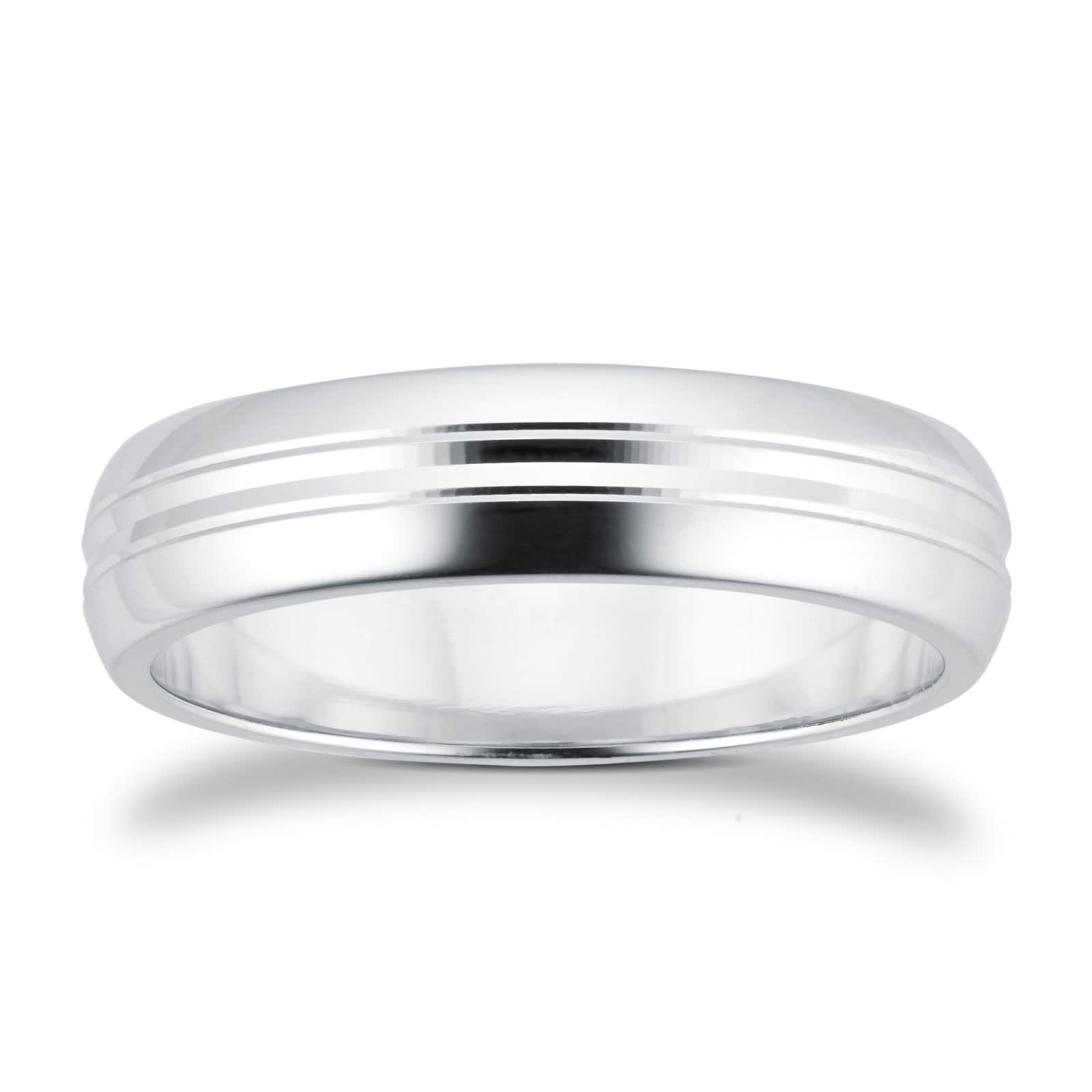 Goldsmiths 5mm D Shape Heavy Grooved Polished Finish Wedding Ring In 9 Carat White Gold