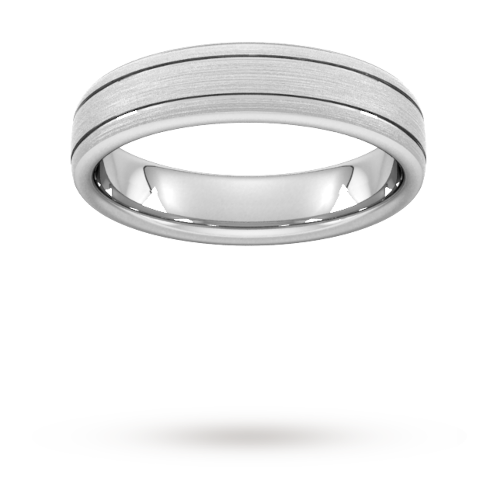 Goldsmiths 5mm D Shape Heavy Matt Finish With Double Grooves Wedding Ring In 18 Carat White Gold