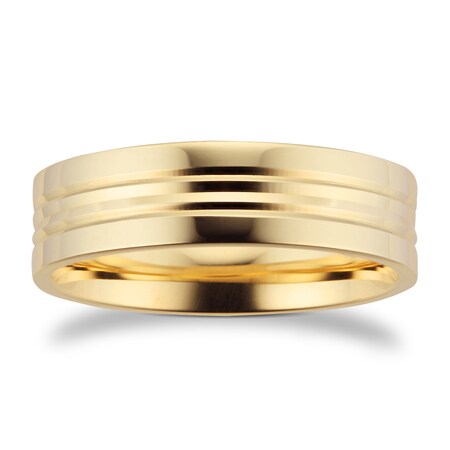 Goldsmiths 5mm Flat Court Heavy Grooved Polished Finish Wedding Ring In 18 Carat Yellow Gold