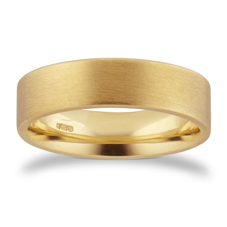 Goldsmiths 5mm Flat Court Heavy Matt Finished Wedding Ring In 9 Carat Yellow Gold - Ring Size H