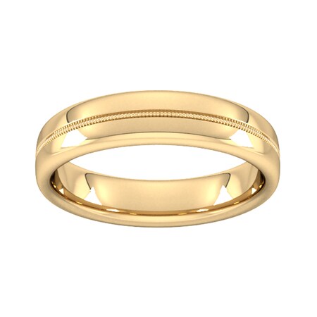 Goldsmiths 5mm Flat Court Heavy Milgrain Centre Wedding Ring In 18 Carat Yellow Gold