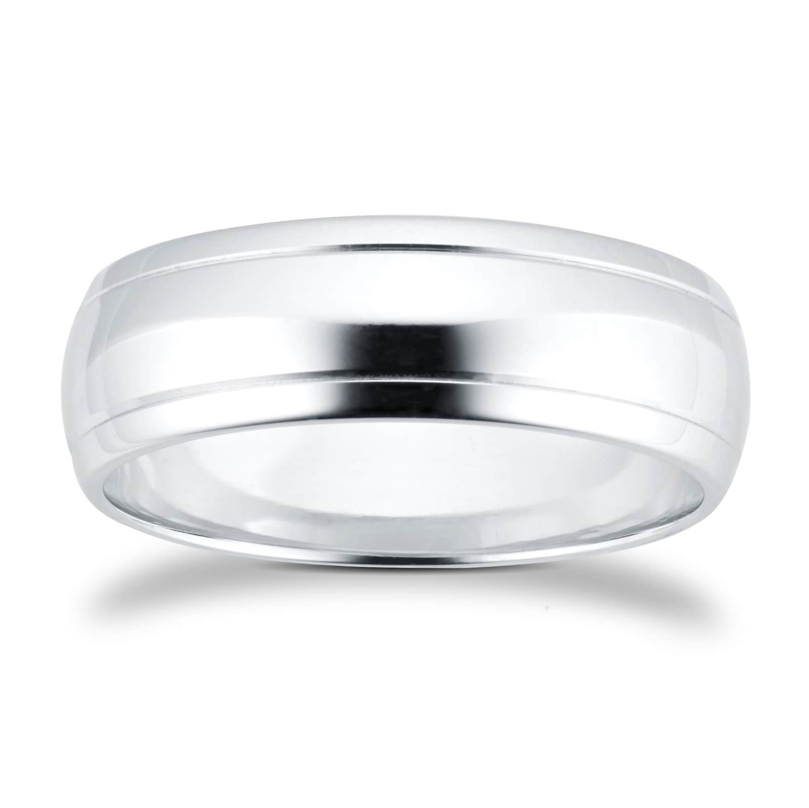 Goldsmiths 6mm D Shape Standard Polished Finish With Grooves Wedding Ring In 9 Carat White Gold