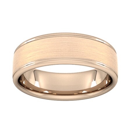 Goldsmiths 7mm Traditional Court Standard Matt Centre With Grooves Wedding Ring In 9 Carat Rose Gold - Ring Size I