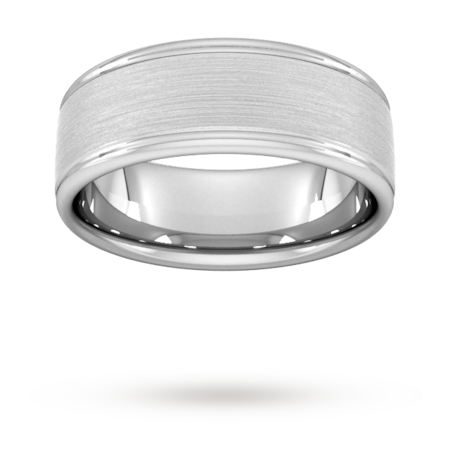 Goldsmiths 8mm Traditional Court Standard Matt Centre With Grooves Wedding Ring In 9 Carat White Gold - Ring Size X
