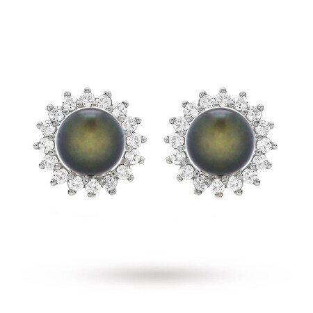 Goldsmiths 9 Carat White Gold 0.26 Carat Diamond Cluster and Grey Pearl Stud Earrings