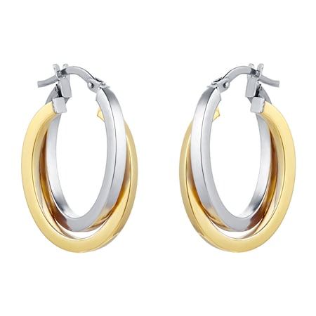 A 9ct white gold hoop and 9ct yellow gold hoop are interwoven, similar to the entwined nature of love and friendships.