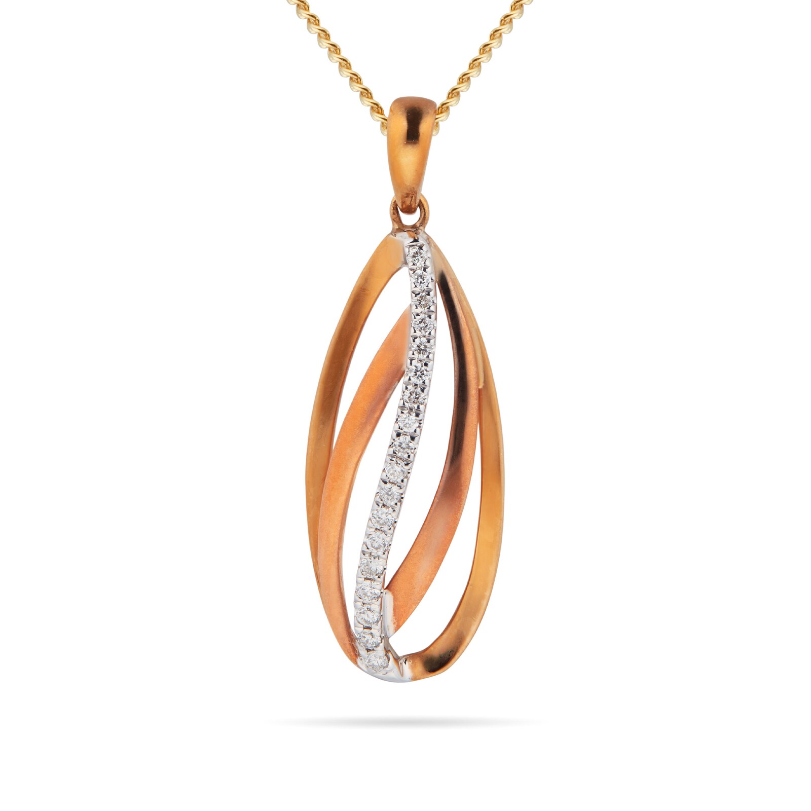 Goldsmiths 9ct Tri Tone 0.10 Carat Total Weight Diamond Oval Swirl Pendant