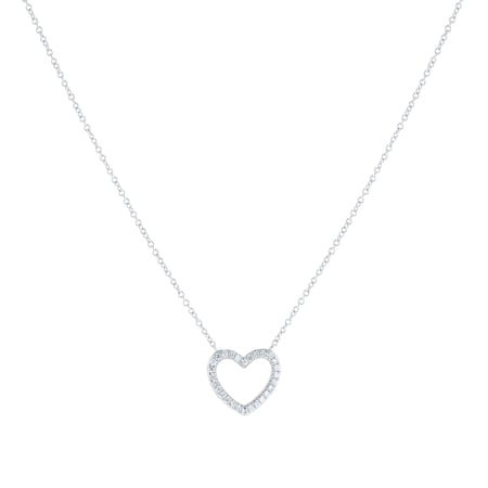 Featuring 0.10ct total weight of diamonds in a heart-shaped pendant, this 9ct white gold necklace is an elegant design, making a versatile and meaningful gift.