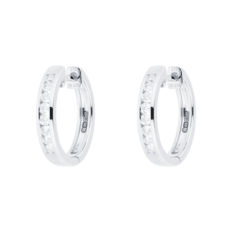 A vibrant take on the classic hoop earring, these 9ct white gold hoops are each adorned with eight glistening diamonds, which reflect the light from every angle.