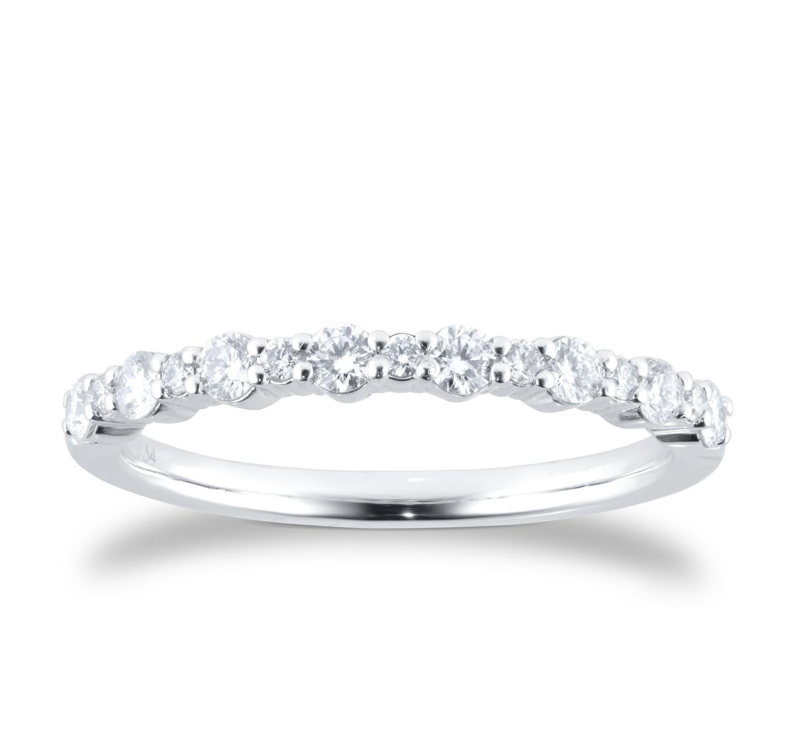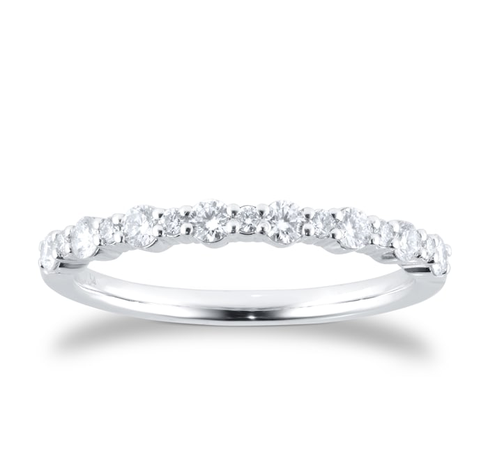 This stunning claw set half eternity ring features a band of sparkling brilliant cut diamonds in alternating sizes, totalling 0.34ct, creating a display of brilliance that symbolises the everlasting nature of your love.