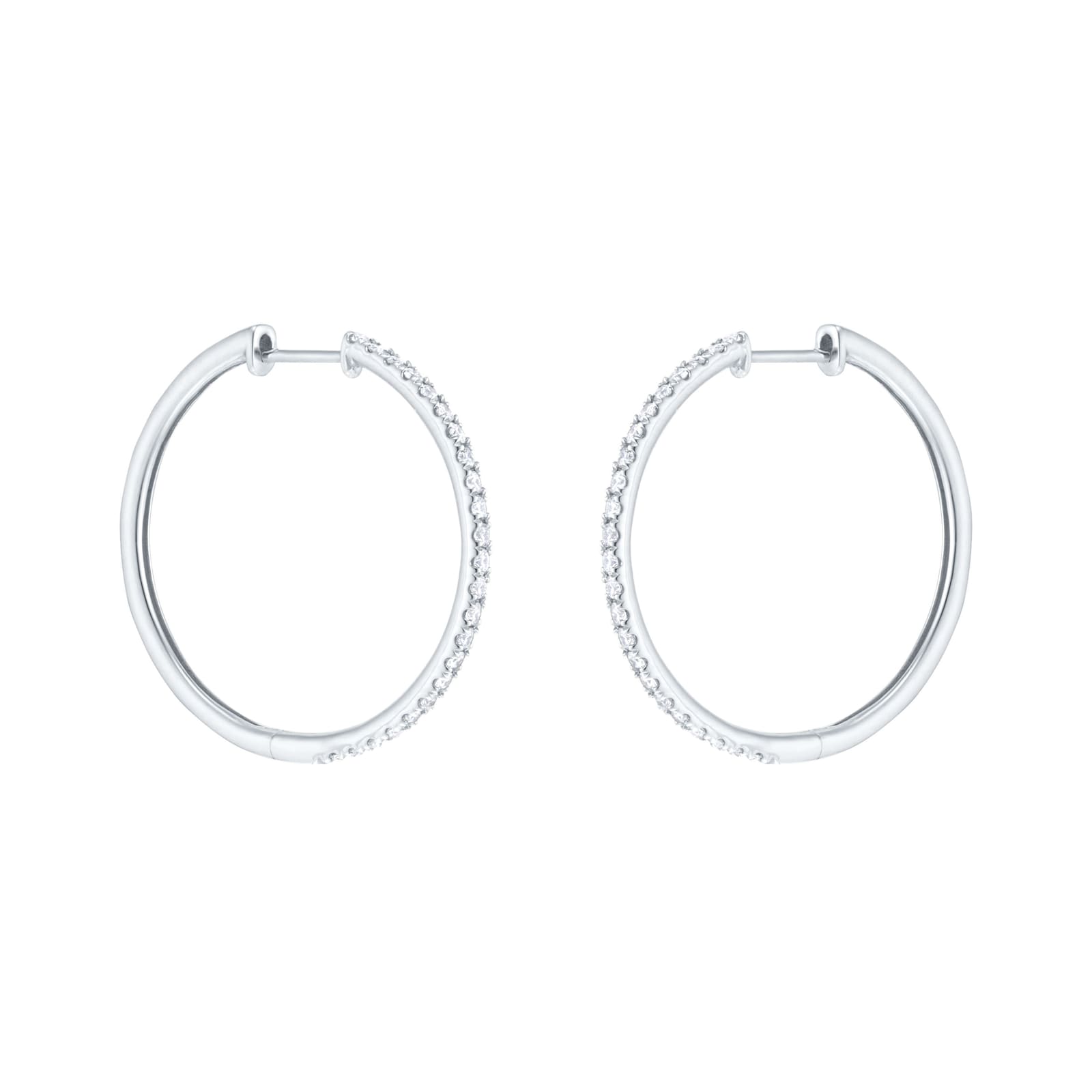 Featuring 0.50ct of round brilliant cut diamonds, these large thin hoops are designed to provide subtle yet eye-catching brilliance, with the white gold finish adding to the understated aesthetic.