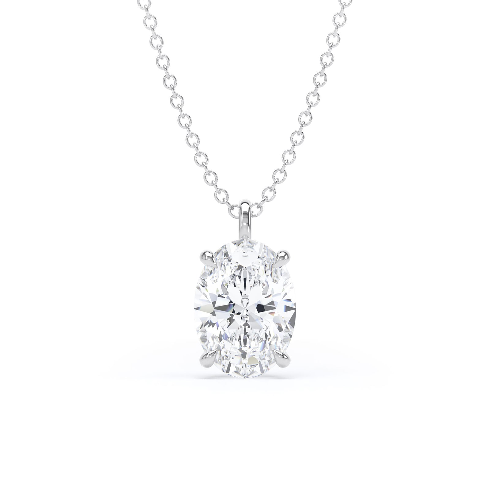 This 9ct white gold necklace features a 1.50ct oval cut lab-grown diamond in a solitaire pendant design. Suspended on a 40–45cm (16–18 inch) chain, the pendant sits gracefully at the collarbone, offering a refined silhouette with exceptional sparkle.
