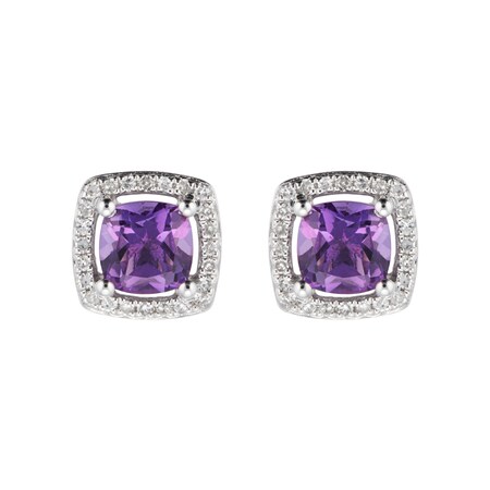 9ct White Gold 0.97ct Amethyst & Diamond 0.14ct Cushion Stud Earrings