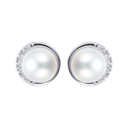 Goldsmiths 9ct White Gold Cultured Fresh Water Pearl & Diamond Stud Earrings