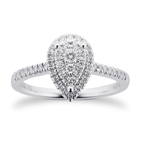Elegant round brilliant cut diamonds in varying sizes are meticulously arranged in a mesmerising pear-shaped cluster, totalling 0.33 carats. Set in luxurious 9ct white gold, this ring exudes light and sophistication, reflecting the beauty of each shared moment.