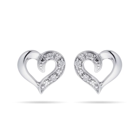 Goldsmiths 9ct White Gold Diamond Set Heart Stud Earrings