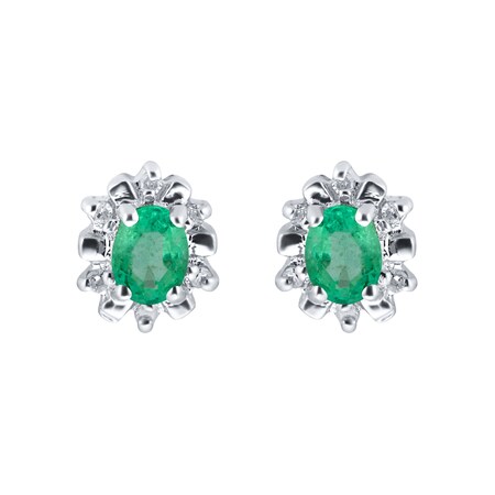 Goldsmiths 9ct White Gold Emerald & Diamond Studs