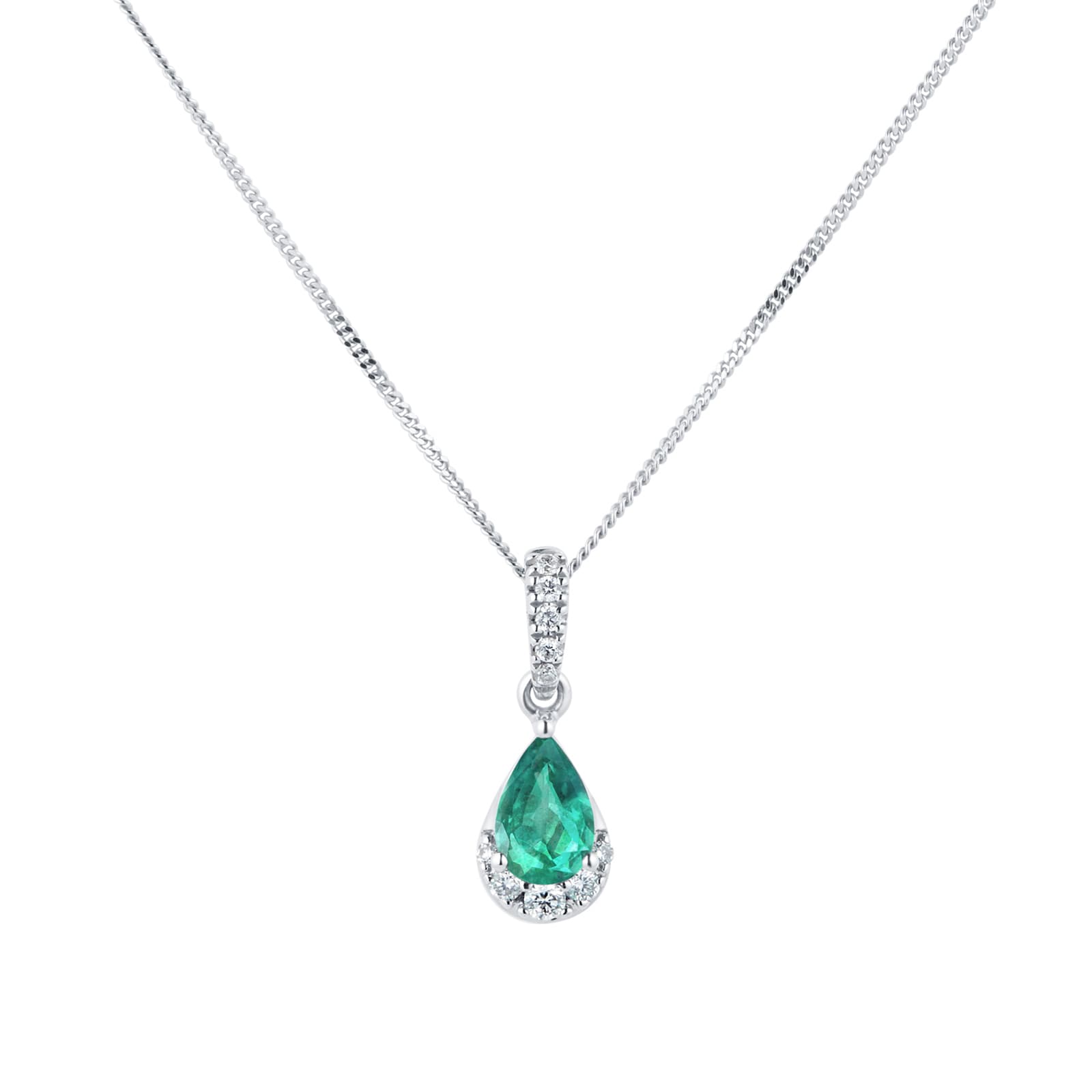 9ct White Gold Pear Cut Emerald & 0.06ct total weight Diamond Pendant
