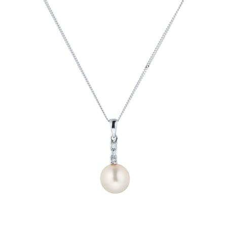- Pearl and diamond 9ct white gold necklace