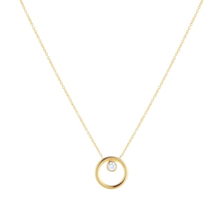 The Goldsmiths Collection offers jewellery designed with understated elegance. This 9ct yellow gold diamond bezel circle necklace is a stylish addition to any collection.