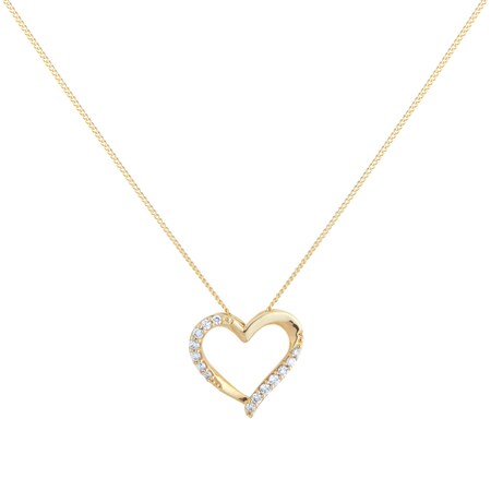 This symbolic necklace is truly captivating, with a 9ct yellow gold heart, set with glistening, round brilliant cut diamonds with 0.12ct total carat weight.