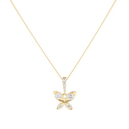 Suspended gracefully from a 9ct yellow chain, this gold butterfly-shaped pendant radiates light with glistening diamonds offering a 0.20 carat total weight.