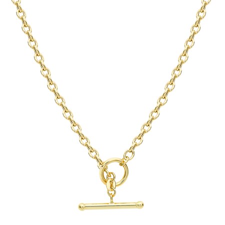 9ct Yellow Gold Polished 100 hollow T-Bar 4mm oval belcher chain - 43cm/17inches.