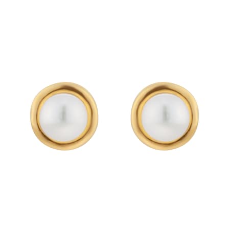Showcasing a timeless design, this pair of pearl rubover stud earrings will forever be in style.