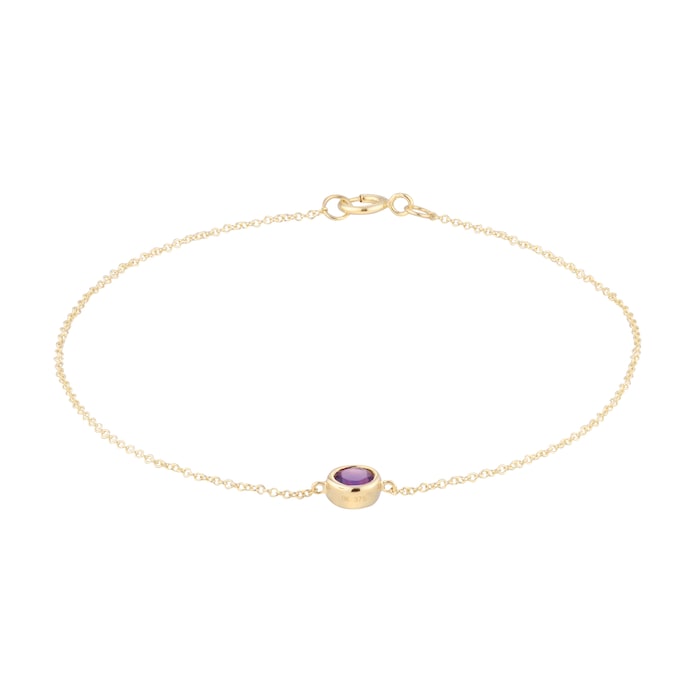 This birthstone bracelet is truly captivating, with a central, round Amethyst stone in a harmonious bezel setting.