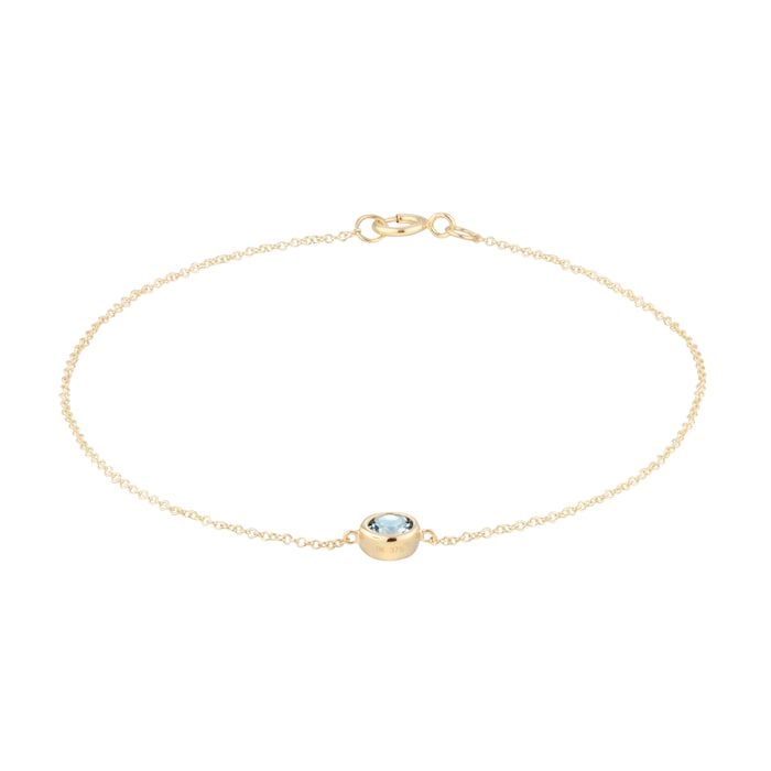 This birthstone bracelet is truly captivating, with a central, round Aquamarine stone in a harmonious bezel setting.