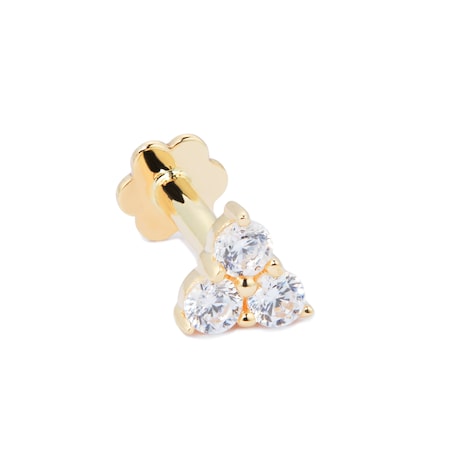 9ct Yellow Gold Cubic Zirconia Trilogy Single Stud Earring. Threaded fastening mechanism. Motif Size 4.3mm. Post Length 7mm
