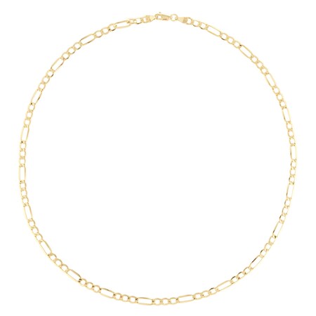 This 9ct yellow gold chain boasts a popular Figaro design formed from elongated oval and rounded links.