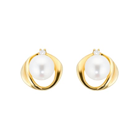 These earrings feature fluid lines of 9ct yellow gold adorned by luxurious pearls.