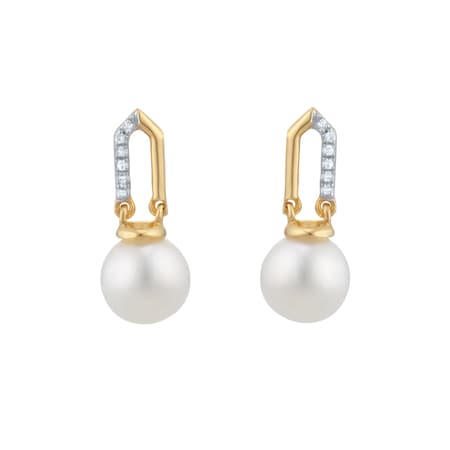 Goldsmiths 9ct Yellow Gold Freshwater Pearl and Diamond Paperclip Stud Earrings