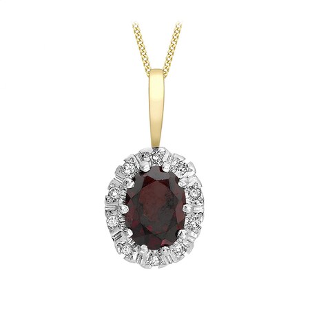 Goldsmiths 9ct Yellow Gold Garnet and Diamond Cluster Pendant