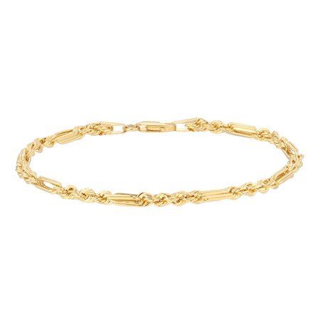 Crafted from 9ct yellow gold, this 18.5cm hollow diamond cut figaro chain bracelet is beautifully delicate and understated.