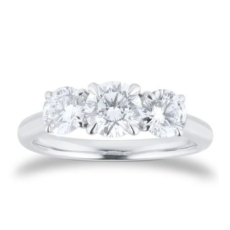 - Exclusive Goldsmiths Signature 77 facet diamond three stone engagement ring